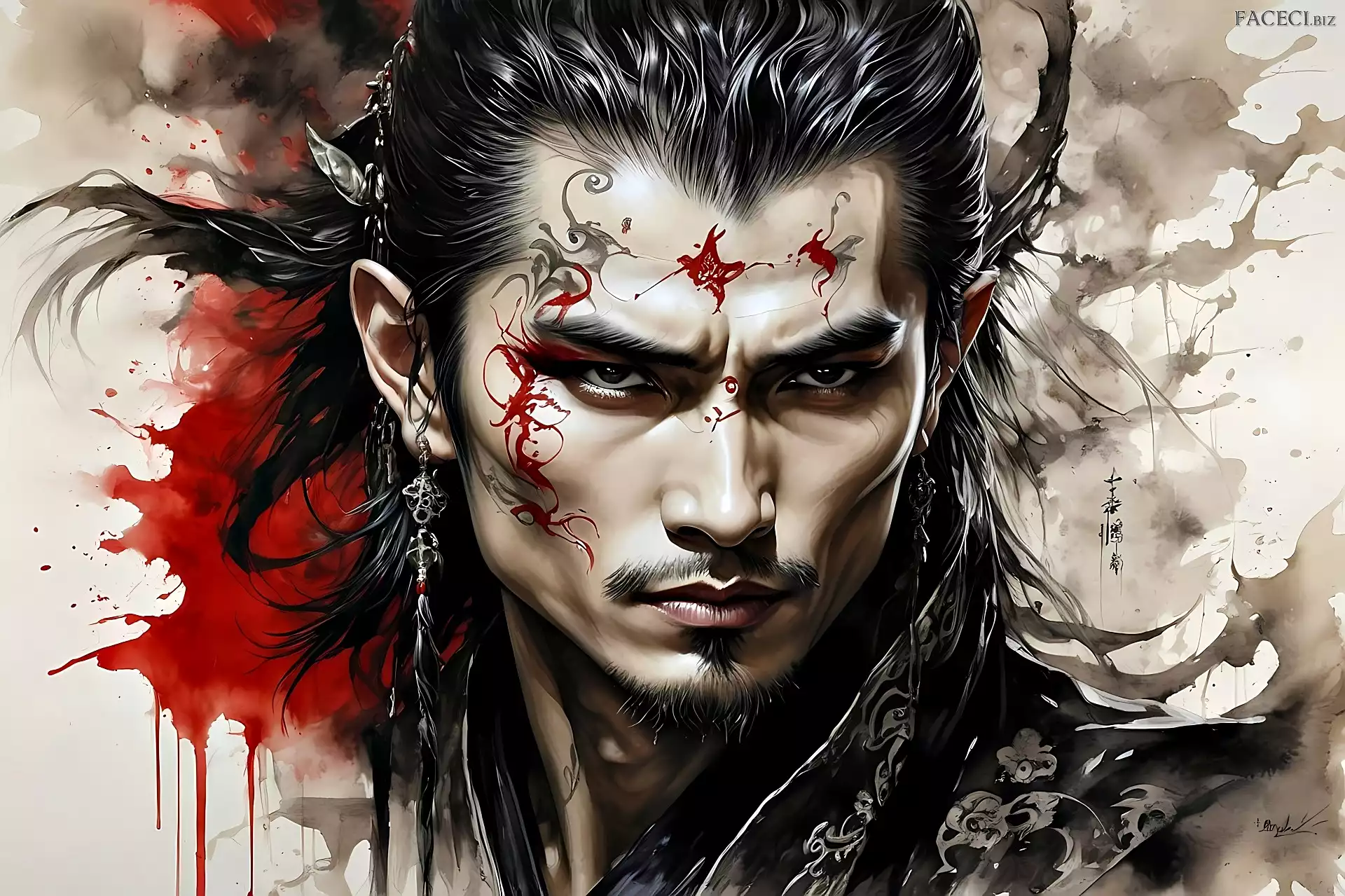 Akwarela, Azjata, Grafika, Mężczyzna, Wojownik - faceci.biz